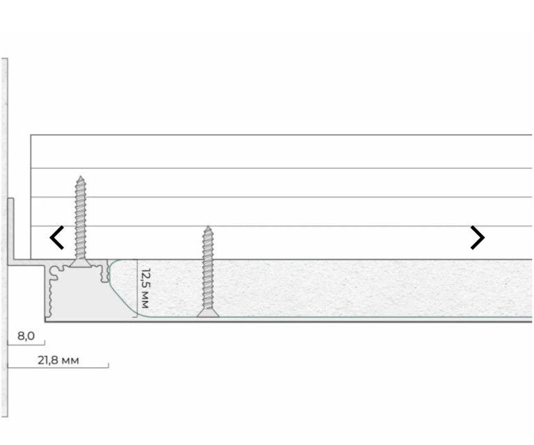 Теневой зазор в 8 миллиметров позволяет легко обновить интерьер стен в помещении, переклеив обои или перекрасив стены избежав демонтажа теневого потолка.